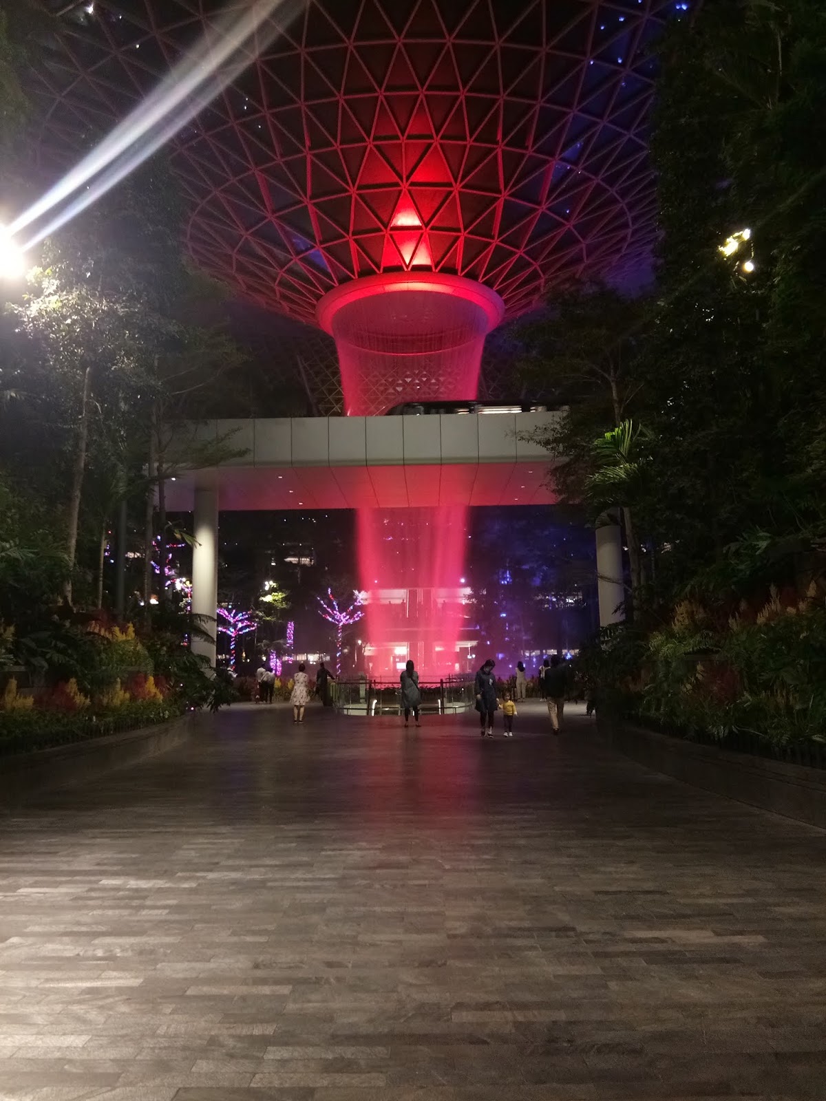 Malam jam 21.30 Sampai di Changi Airport kami gak mau langsung ke penginapan, karena kami tau di Changi Airpot ada sebuah pertunjukan yang tentunya juga saya tunggu.